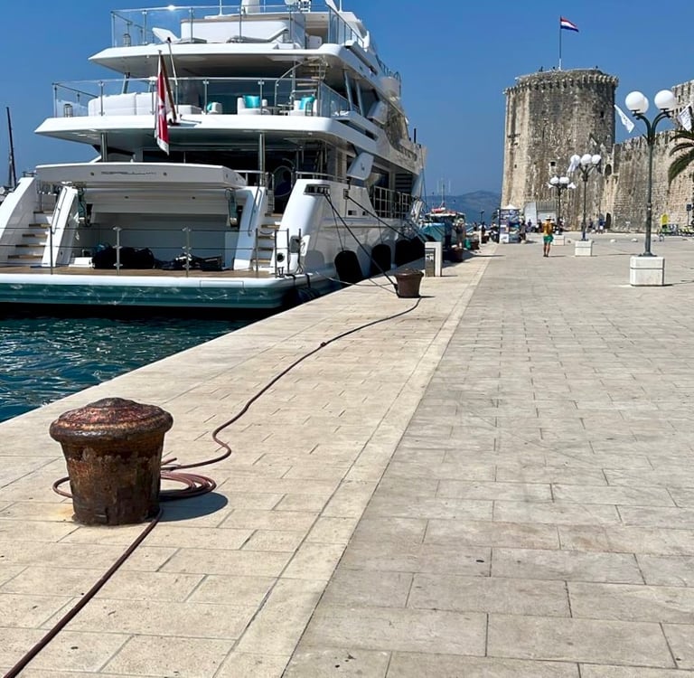 Explore the historic town of Trogir, a UNESCO-protected gem on the Dalmatian coast. Stroll through its narrow stone streets, admire centuries-old architecture, and enjoy a coffee along the waterfront promenade. This sightseeing stop offers the perfect introduction to authentic Dalmatian life and culture before continuing your private boat tour from Split.