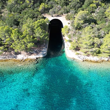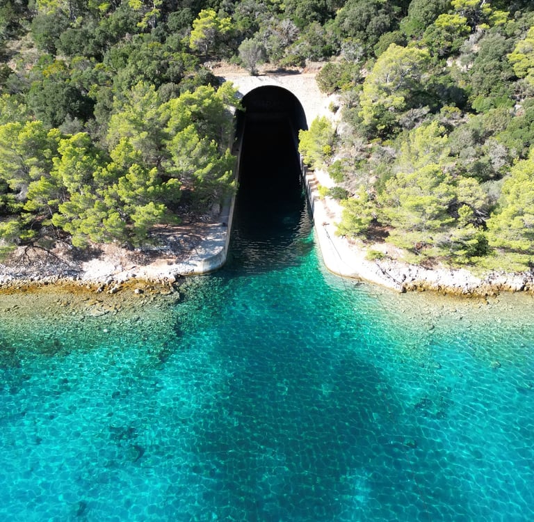Visit the historic military tunnel in the Nerezisca cove on the island of Brac. Originally built during the 20th century for strategic defense, this hidden site offers a glimpse into the island’s military past. Explore the tunnel area, enjoy the scenic cove, and take photos of this interesting sight on the island of Brac, a unique cultural stop along your private speedboat tour from Split.
