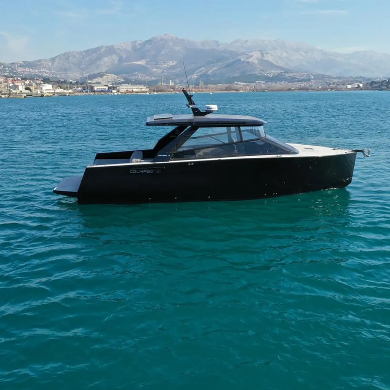 Built in 2025 and powered by a Cummins 480 HP inboard engine, the Colnago 35 is the flagship of our fleet — a premium motor yacht manufactured in Croatia by Colnago Marine, one of the most respected names in Croatian yacht building. At 11.4 meters in length and 3.65 meters in beam, this is the largest and most spacious vessel we offer, designed for guests who want the full yacht experience without sacrificing speed or range. A deep V-hull and a 550 liter fuel tank deliver outstanding stability and range across all Adriatic conditions, cruising comfortably at 24 knots and reaching a top speed of 32 knots. Designed to accommodate up to 12 guests plus 2 crew members, the generous deck space ensures every guest travels in comfort. Equipped with a 12" Simrad navigation system and full safety gear for all passengers, the Colnago 35 is ideal for full-day and half-day yacht tours, sunset cruises, and premium day or night transfers along the Dalmatian coast.