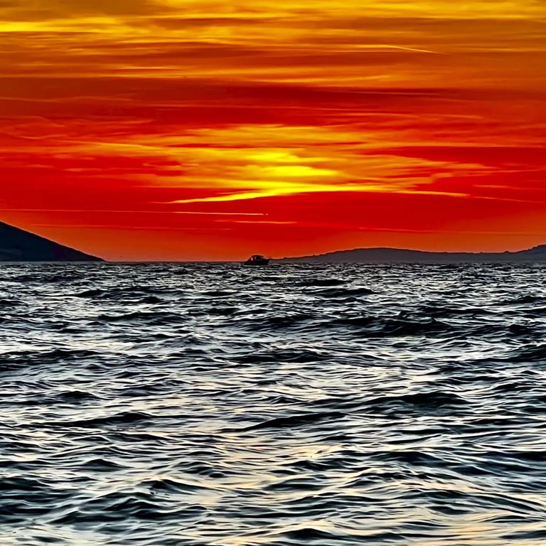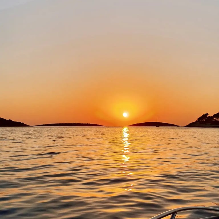As we gently cruise along the stunning coastline of Split, we’ll find the perfect secluded spot to pause and soak in the magic of the sunset. Watch as the sky transforms into shades of gold and crimson while the sun slowly melts into the horizon. On days with ideal conditions, we may venture further into the open sea—offering an even more breathtaking view where the sun truly “kisses” the water, creating an unforgettable Adriatic sunset experience.